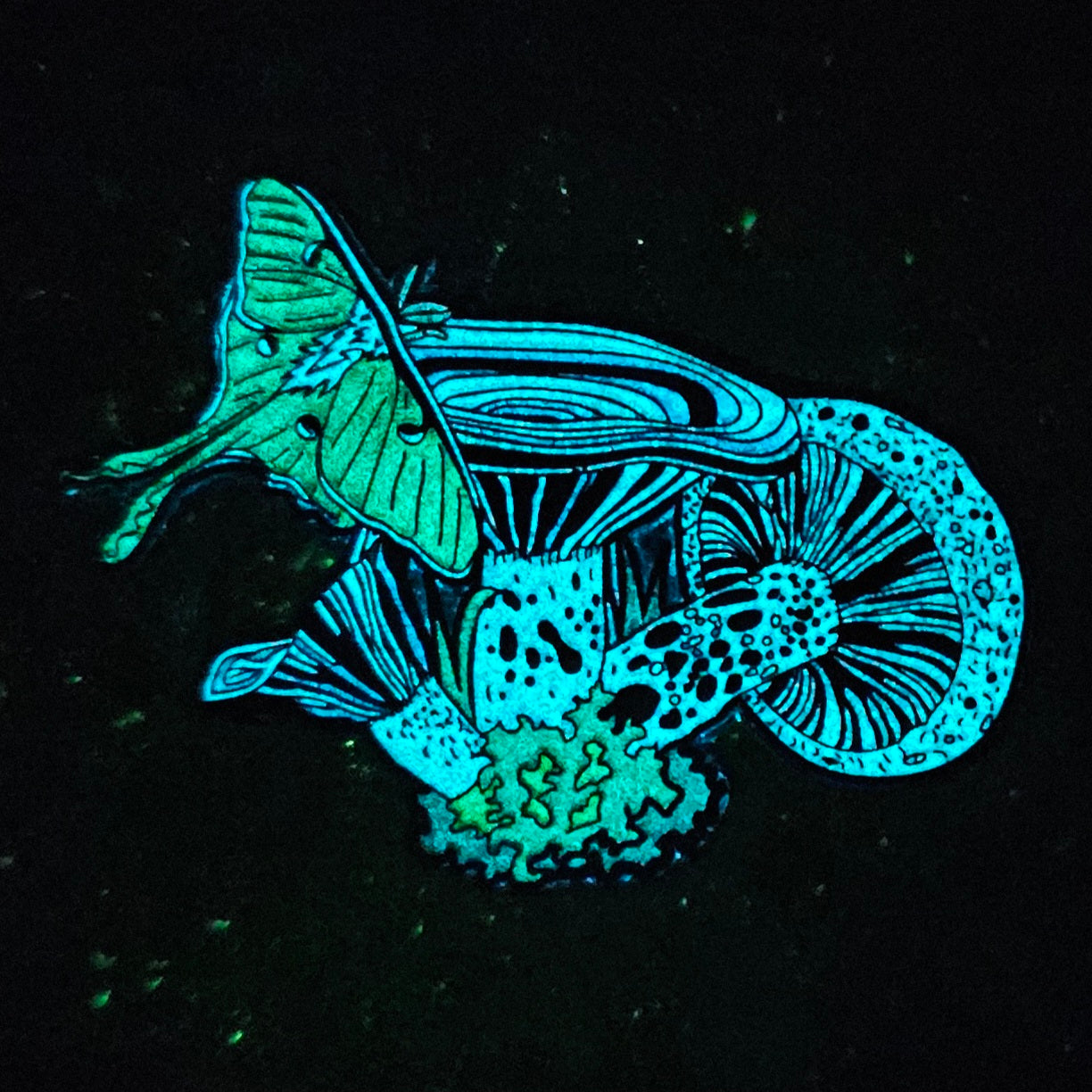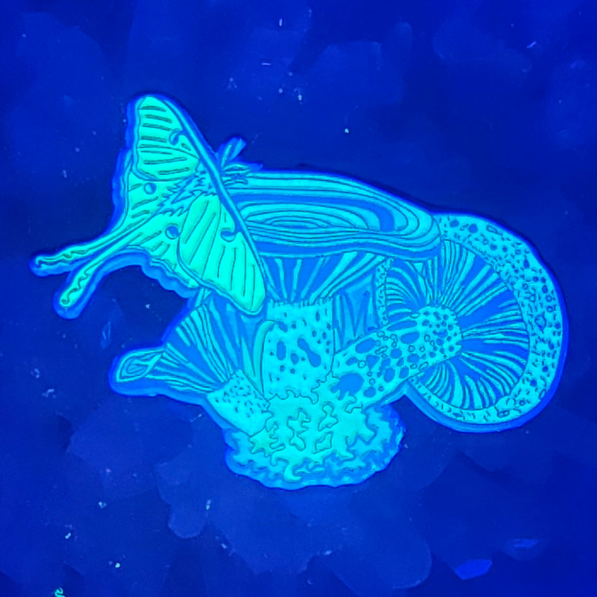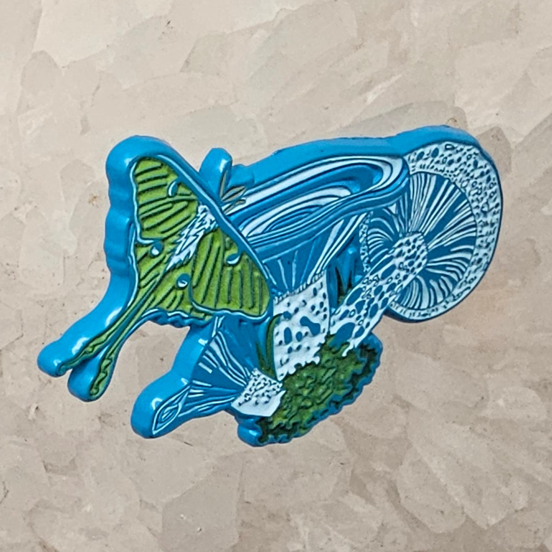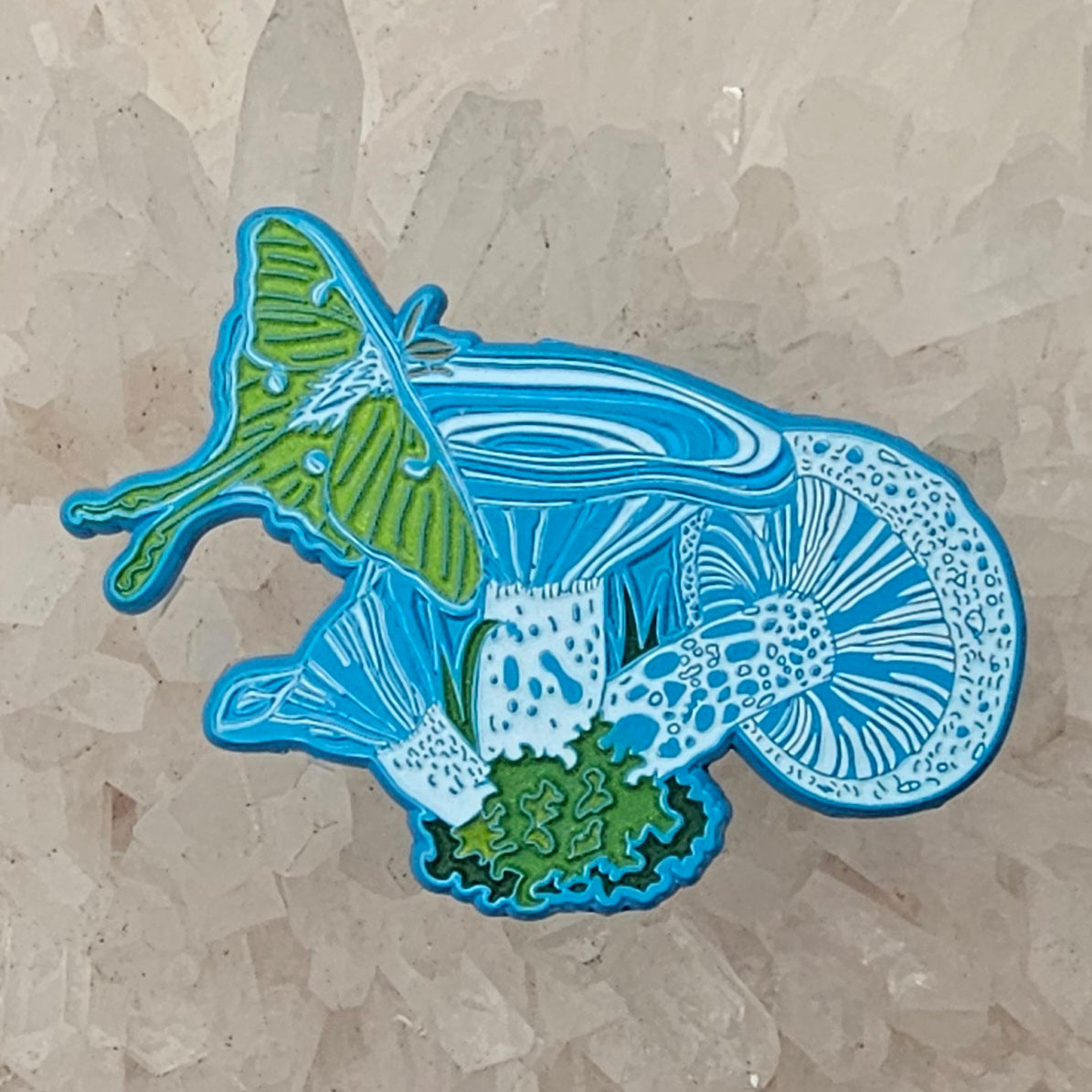 Mythical Mushroom Moth Blue Dyed Metal Psychedelic Shroom Nature Art Insect Limited Edition Glow Enamel Pins Hat Pins Lapel Pin Brooch Badge Festival Pin