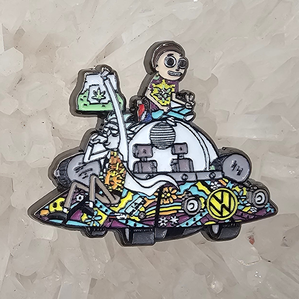 Trippy Ship Rick And Festival Fiend Morty Psychedelic Limited Edition Glow Enamel Pins Hat Pins Lapel Pin Brooch Badge Festival Pin