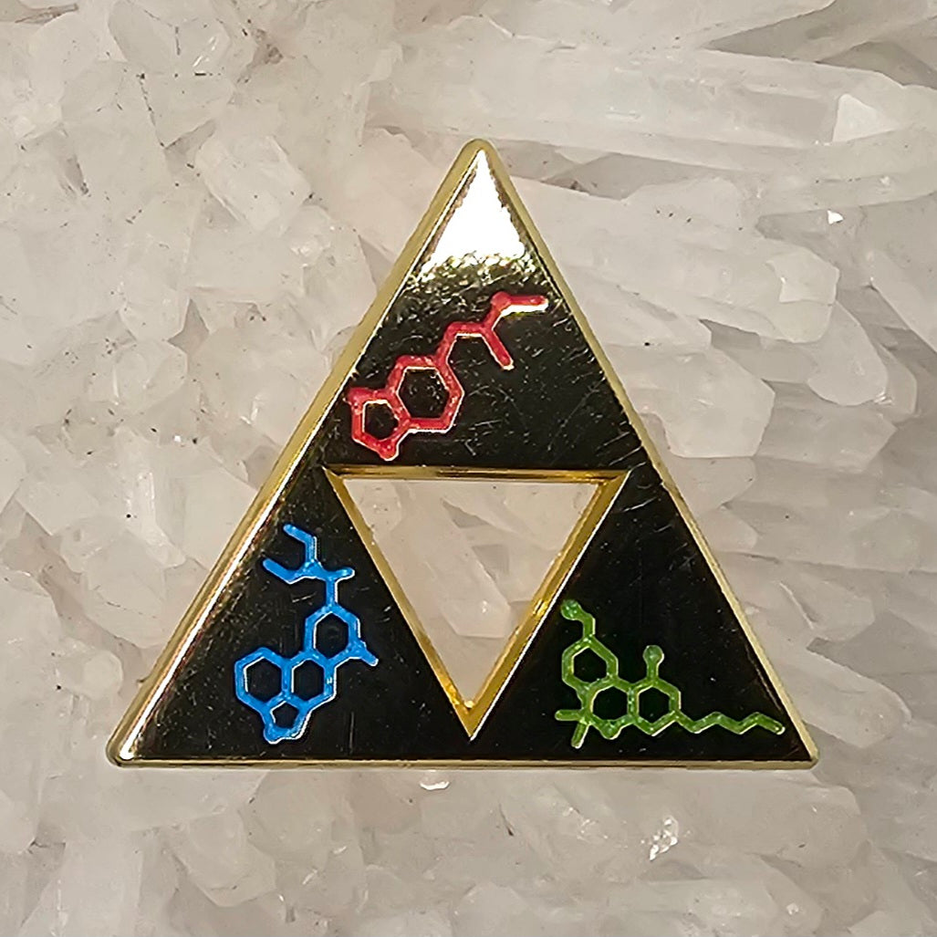 The Legend of MDMA THC LSD Molecules Zelda Trippy Triforce Video Game Enamel Pin Hat Pin Lapel Pin Brooch Badge Festival Pin