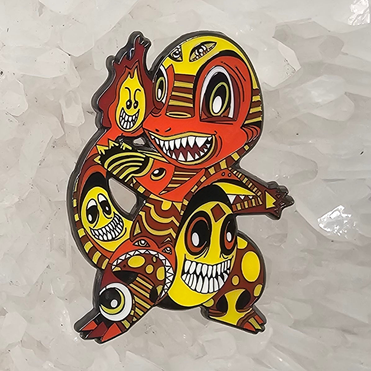Psychedelic Monster Face Charmander Demons Poke Ball Video Game Enamel Pins Hat Pins Lapel Pin Brooch Badge Festival Pin