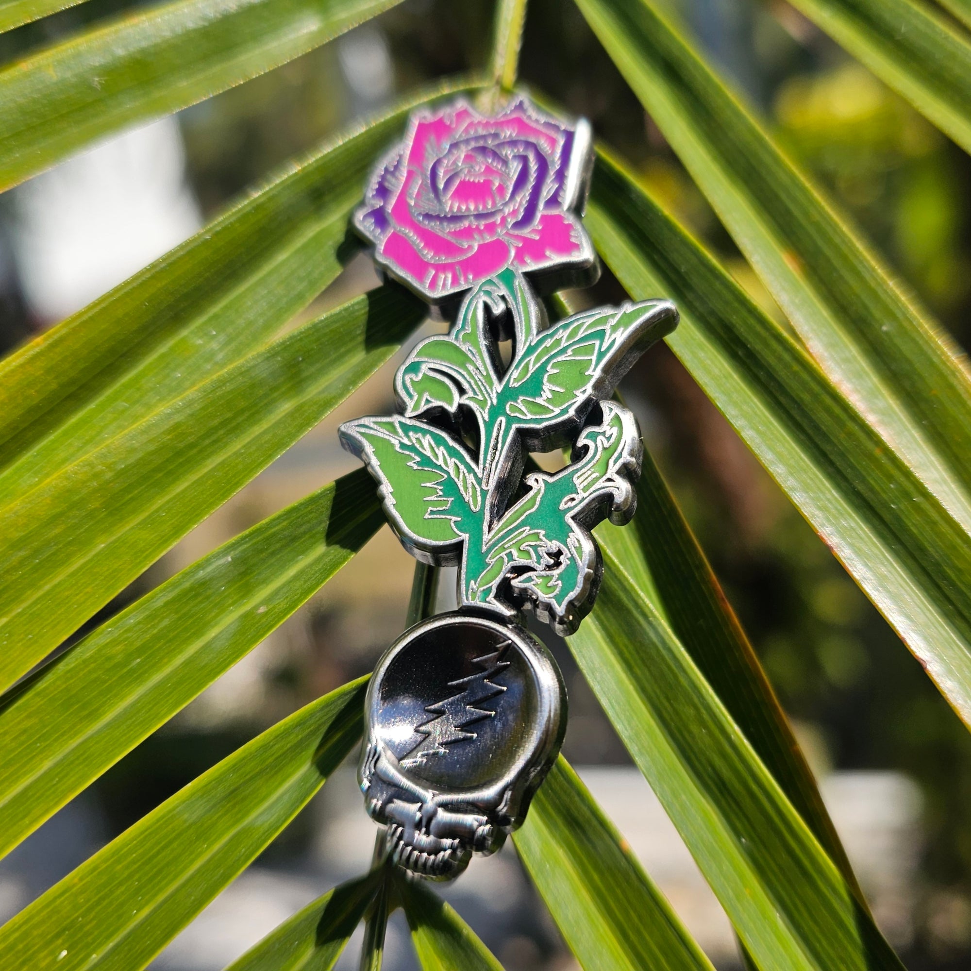 Forever Grateful Blooming Rose Stealie Seed Dead Head Skull Mini Spoon Enamel Pins Hat Pins Lapel Pin Brooch Badge Festival Pin